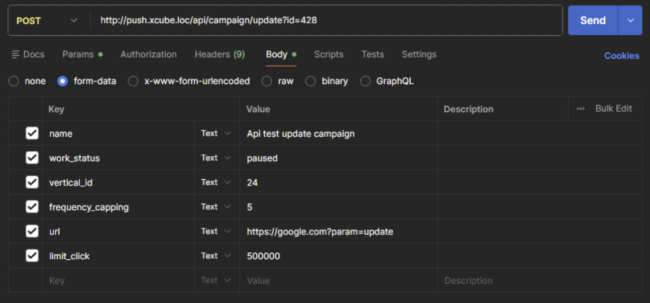 "id":389, // campaign id